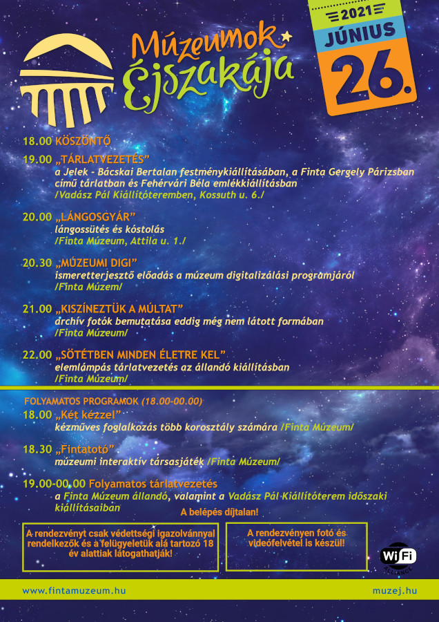 szombat: 9-12; 14-17 (ügyelet a Finta Múzeumban)
