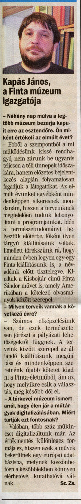 kedd-péntek: az időszaki kiállításaink csak előzetes telefonos bejelentkezés után látogathatók (56-361-183; 0620-445-0429)