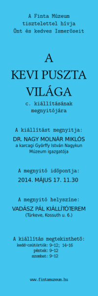 A Finta Múzeum és a Vadász Pál Kiállítóterem mindkét napon (május 17-18.) egész napos (9-17) nyitva tartással várja a Kedves Látogatókat!