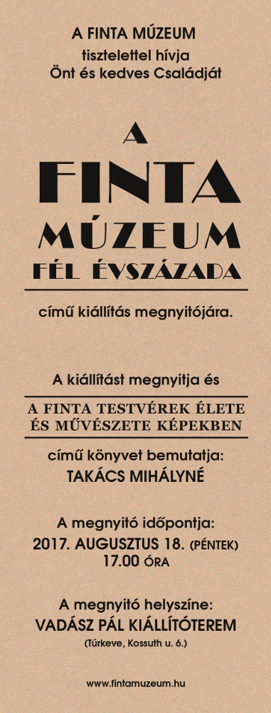 szombat: 9-12; 14-17 (ügyelet a Finta Múzeumban)