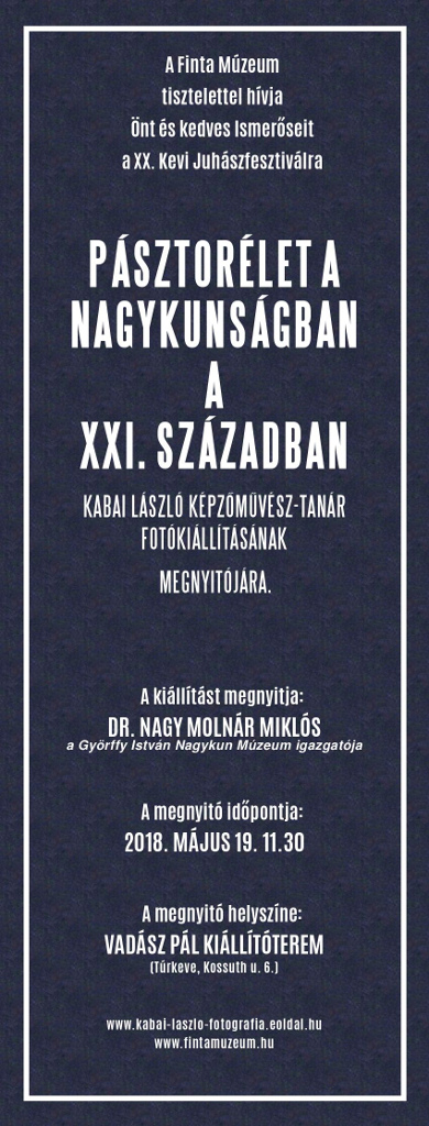Szeretettel várunk mindenkit új időszaki kiállításunk megnyitójára: Kabai László képzőművész-tanár Pásztorélet a Nagykunságban a XXI. században fotókiállításra.