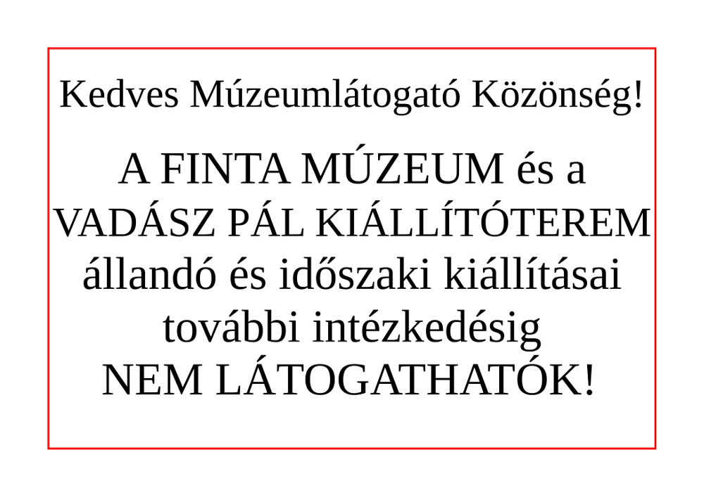 kedd-péntek: az időszaki kiállításaink csak előzetes telefonos bejelentkezés után látogathatók (56-361-183; 0620-445-0429)