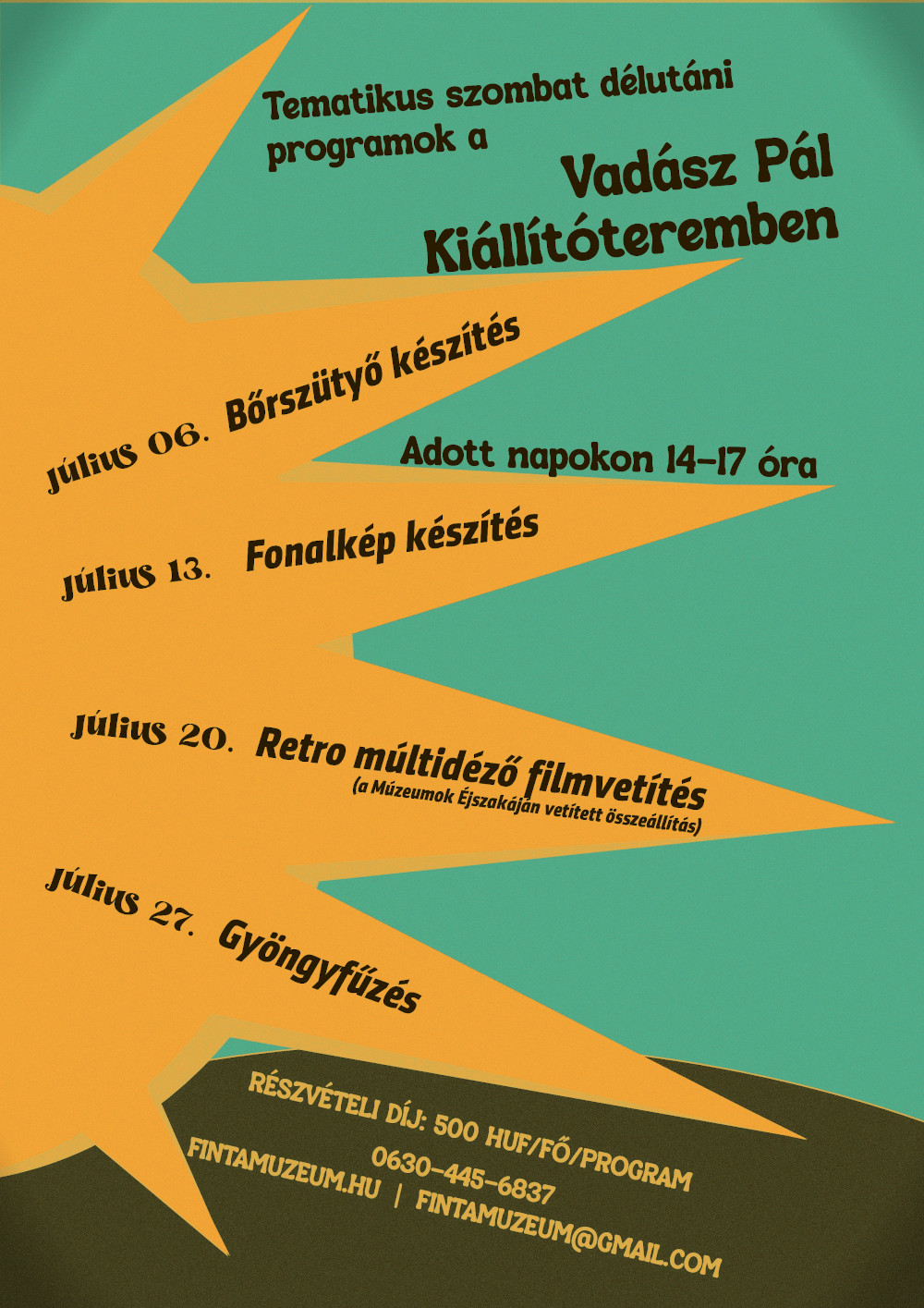 szombat: 9-12; 14-17 (ügyelet a Finta Múzeumban)