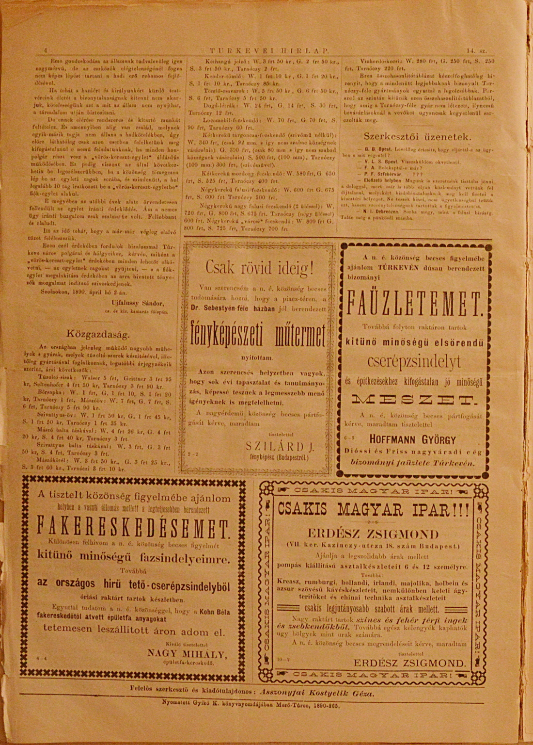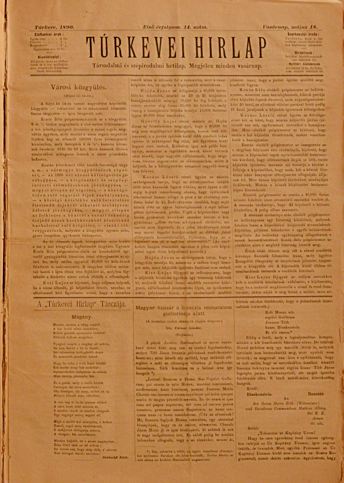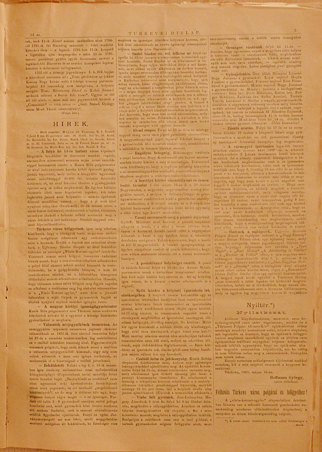 Túrkevei Hírlap 1890. május 18.